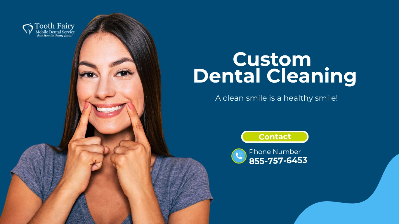 At Tooth Fairy Mobile Dental Service, we believe that no two smiles are the same—and your dental cleaning shouldn’t be either. Our Custom Dental Cleaning service is designed to give you the care you truly need, without stress, fear, or the hassle of traveling to a dental office. Best of all, we come to you.